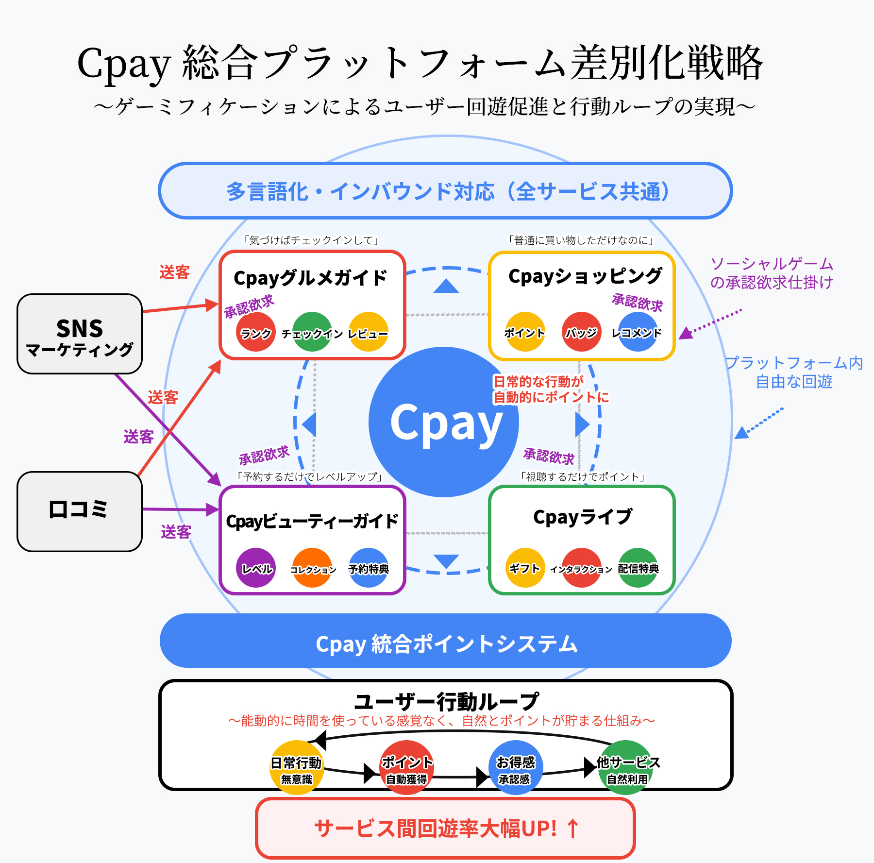 - 独自決済システムCpayを基盤に、オンライン・オフラインを統合した決済エコシステムを構築