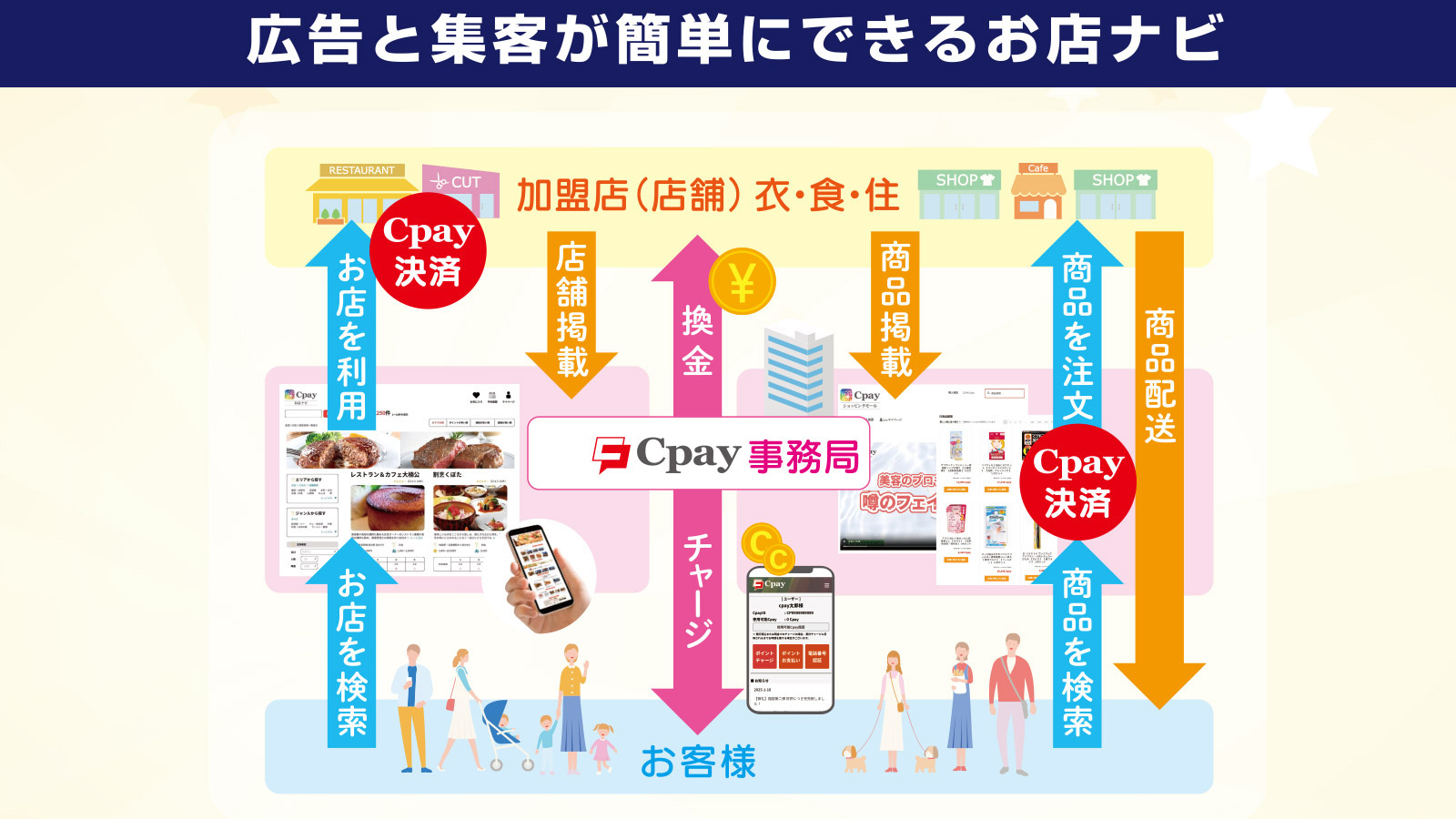 インターネットを通じたあらゆる販促を仕掛け続けることで、店舗様の露出が増加し、Cpayユーザー以外にも広く店舗をアプローチすることができます。露出が広がり、プラスアルファの効果が見込めます。